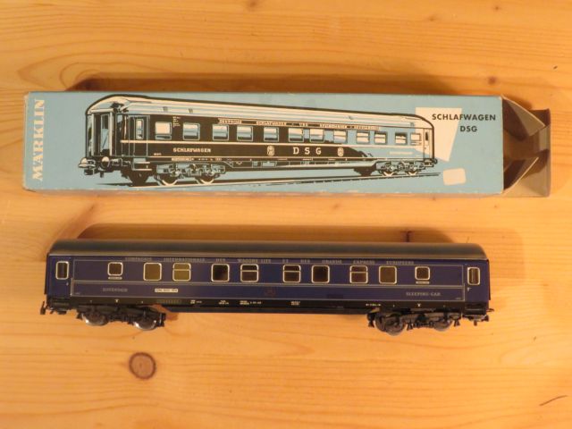 Märklin 4029 nternationaler Schlafwagen Beschriftung: Roma-Basel-Köln (falscher Karton: 4064)